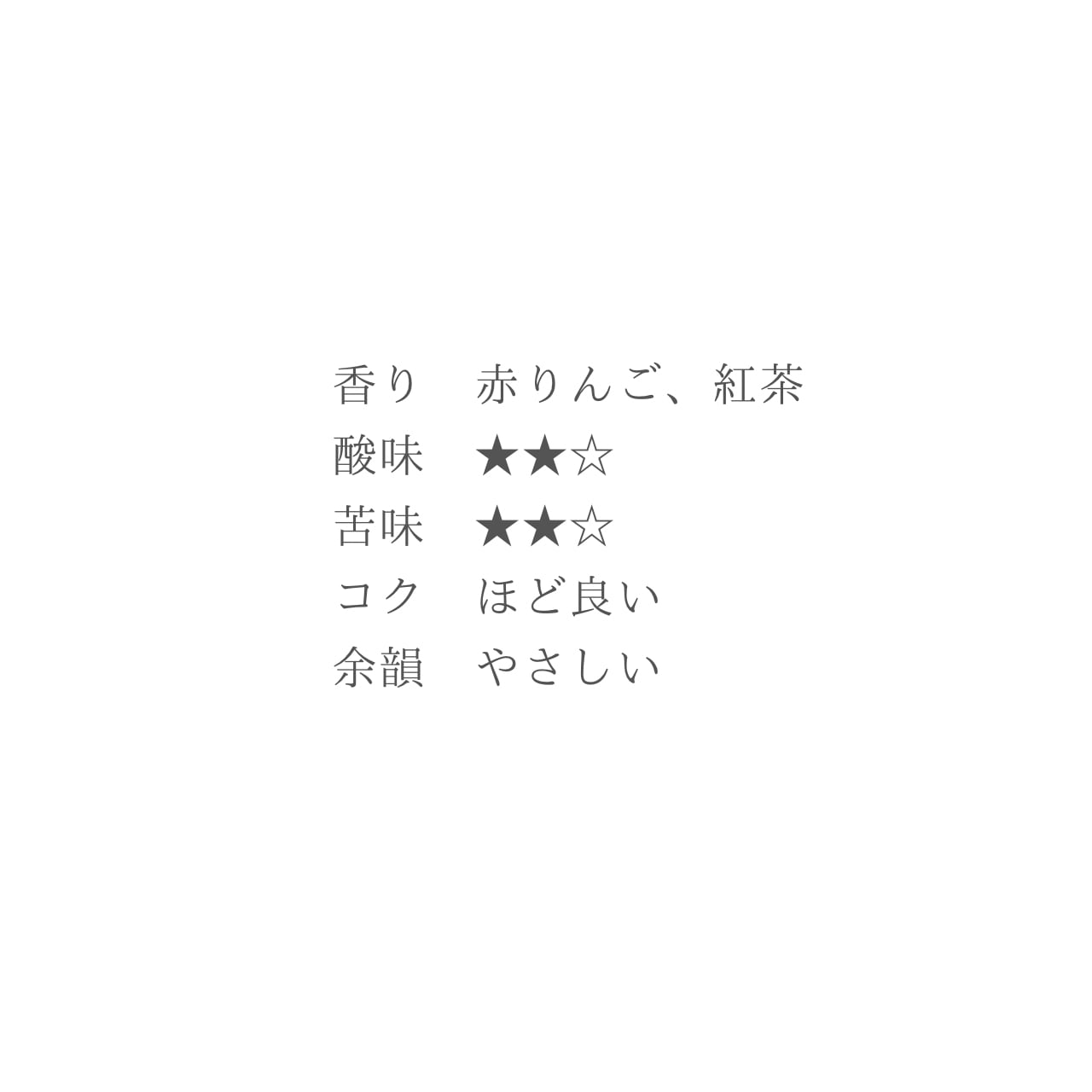 香り:赤リンゴ、紅茶